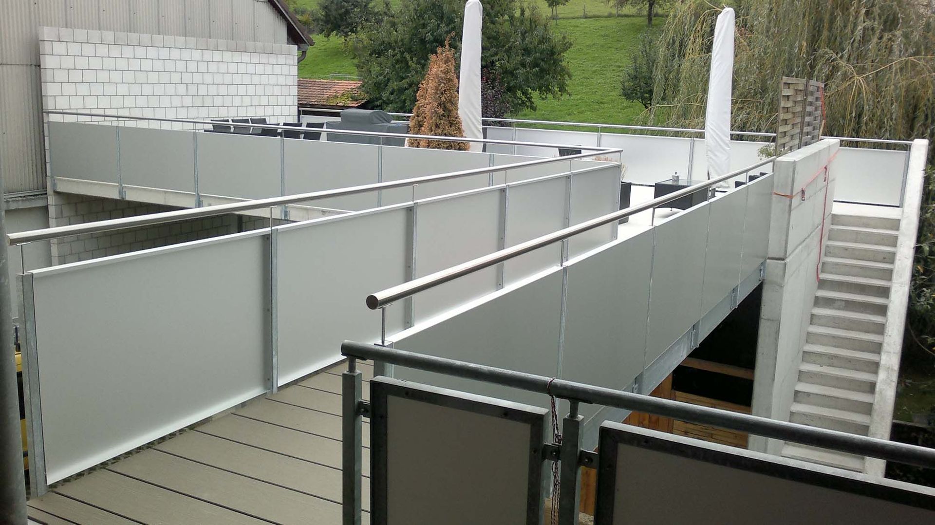 Auf Wunsch bauen wir für Sie Ihren individuellen Sicht- oder Windschutz. Dabei ist der Fantasie keine Grenzen gesetzt. Sie sagen uns nur, wo der Wind weht oder welche Sicht Sie schützen wollen und wir setzen es für Sie um. Reichenbach Metallbau setzt Ihre Vorstellungen in Realität um.